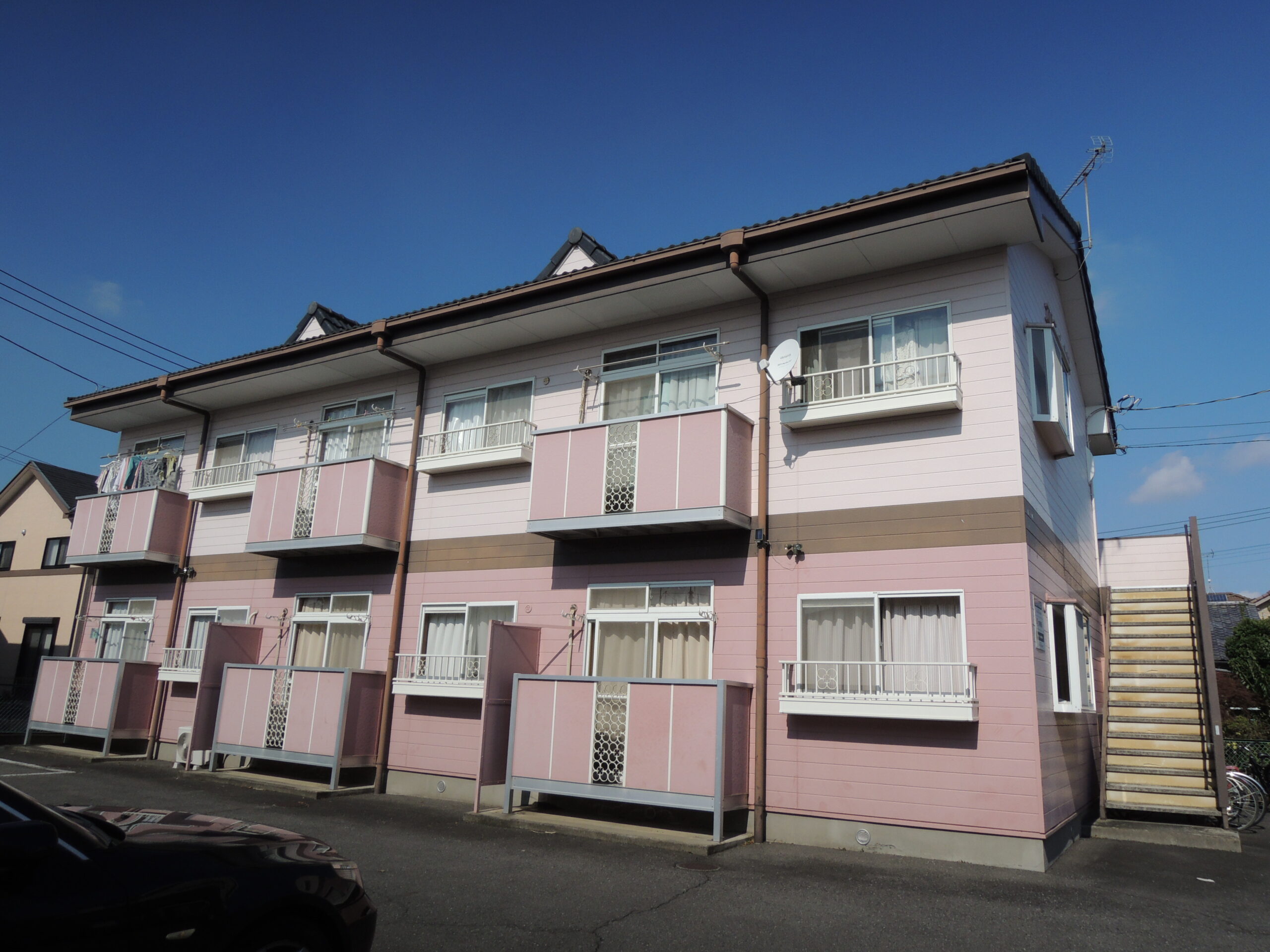 TOP > 施工事例 > 高崎市下之城町Eアパート様 外壁塗装工事で【色あせリセット】!同じ色とは思えないほどの美観回復